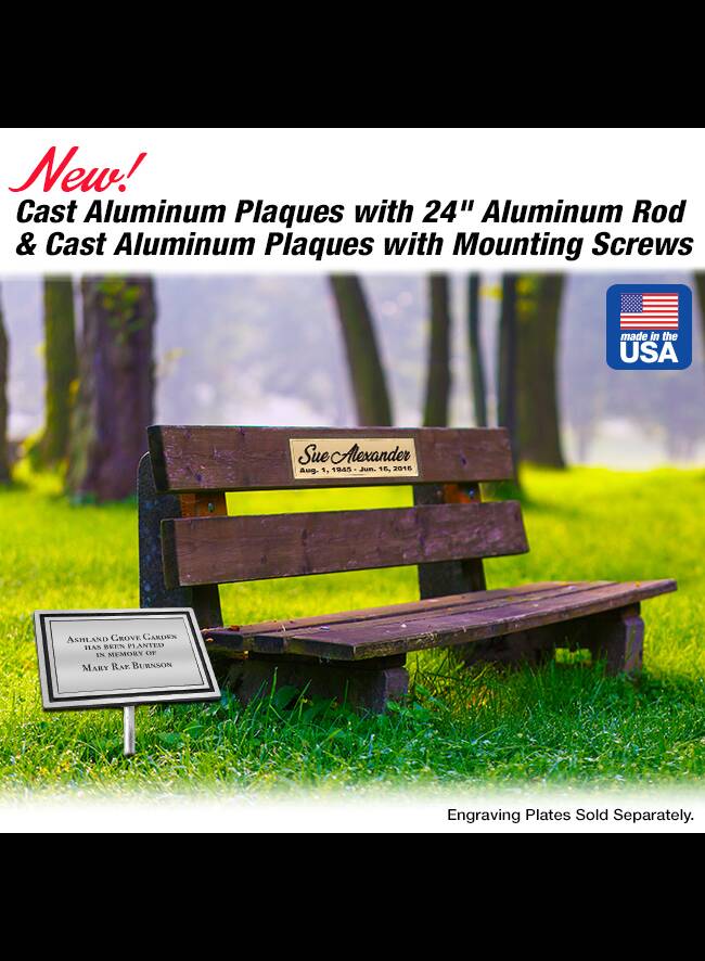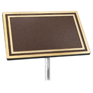 This Bronze Cast Aluminum Plaque w/ 24″ Stake will add an elegant touch to your building dedication or memorial garden! Made with coated UV/Weather resistant plastic, these custom outdoor memorial plaques are able to withstand the elements. Used as custom garden plaques, memorial plaques, or dedication plaques, this plaque comes with four screws making it ideal for attaching to bench, wall or tree. Available in three sizes, this custom outdoor plaque has a brown surface with a raised bronze double border. Letters appear flat on the surface and are engraved inside the border. Personalization Included in price. Made in the USA.